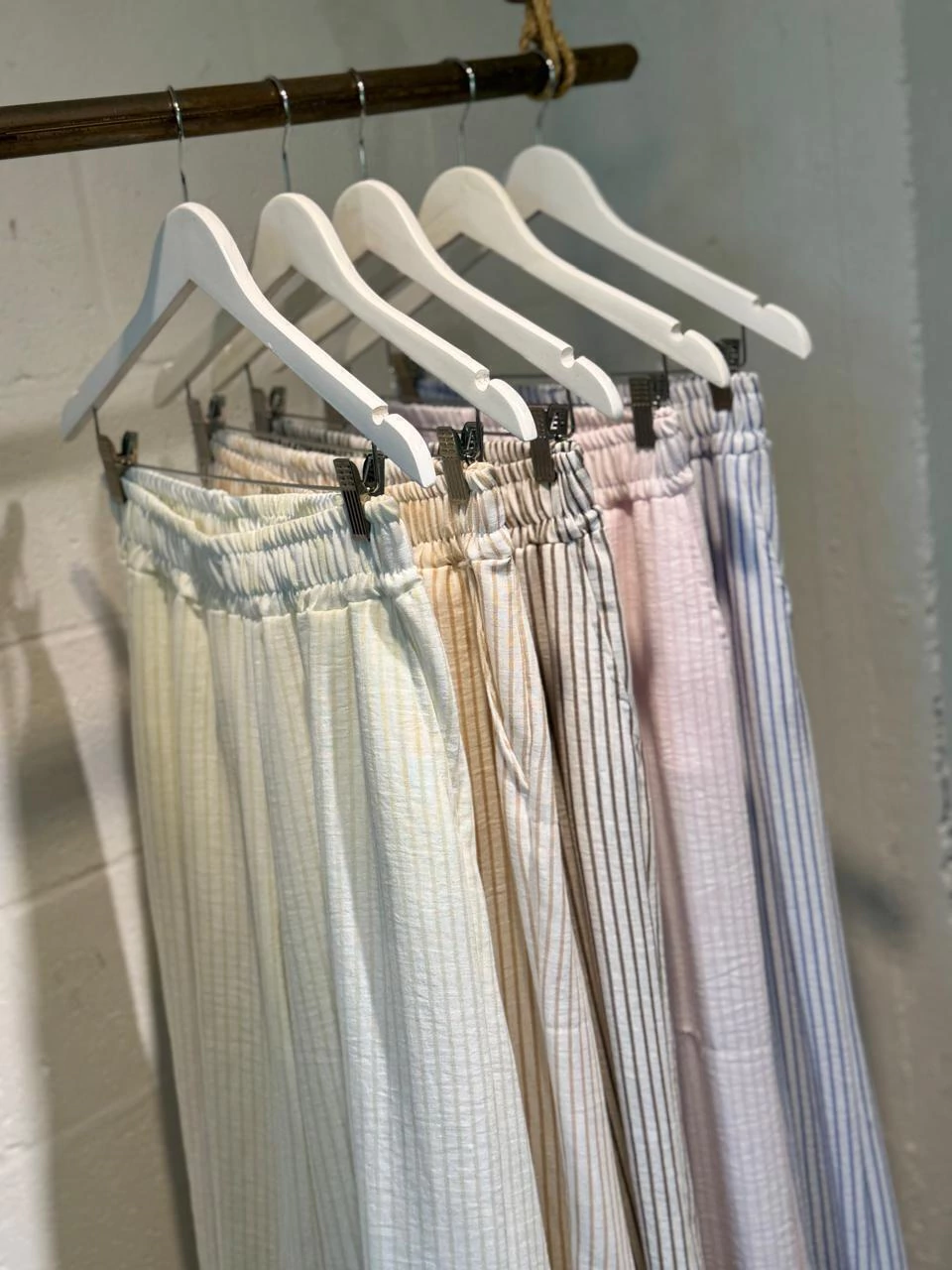 Pantalones amplios de textura liviana con cintura elastizada y diseño rayado. De calce relajado y caída fluida, combinan comodidad y estilo en una prenda ideal para el día a día. Disponibles en tonos suaves y neutros, perfectos para looks frescos y versátiles de verano.