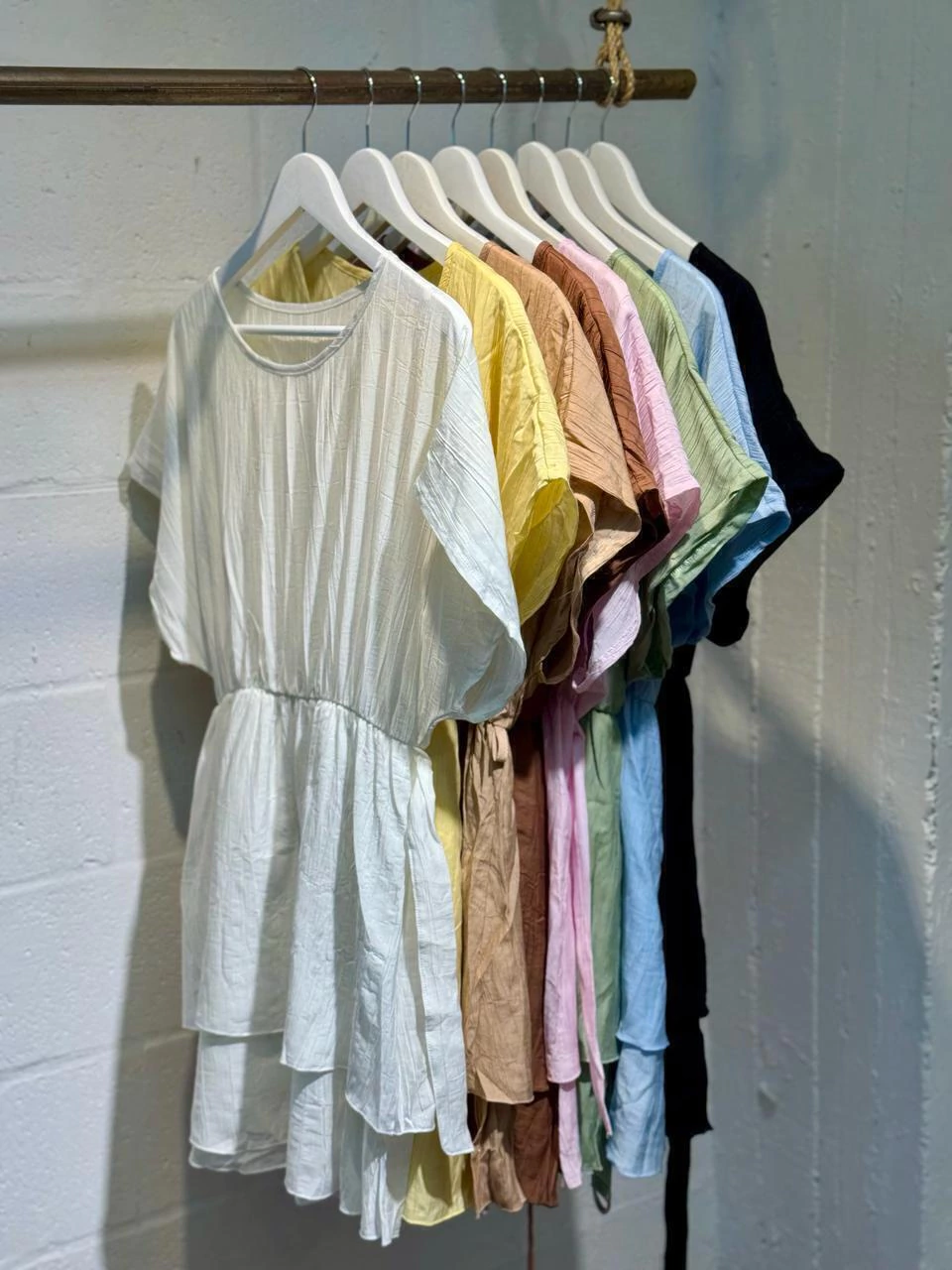 El ruedo en capas aporta movimiento y un estilo fresco, ideal para el día a día o para looks veraniegos relajados.